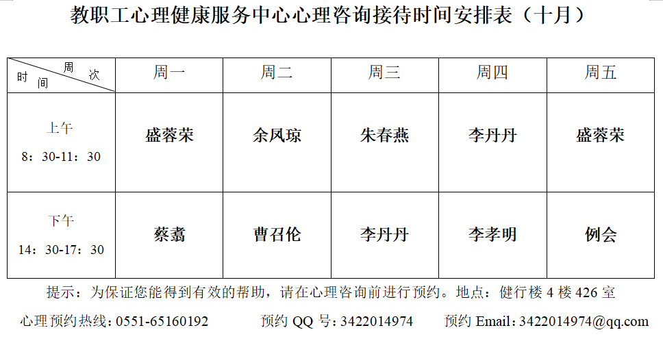 三 心理咨询接待时间安排表